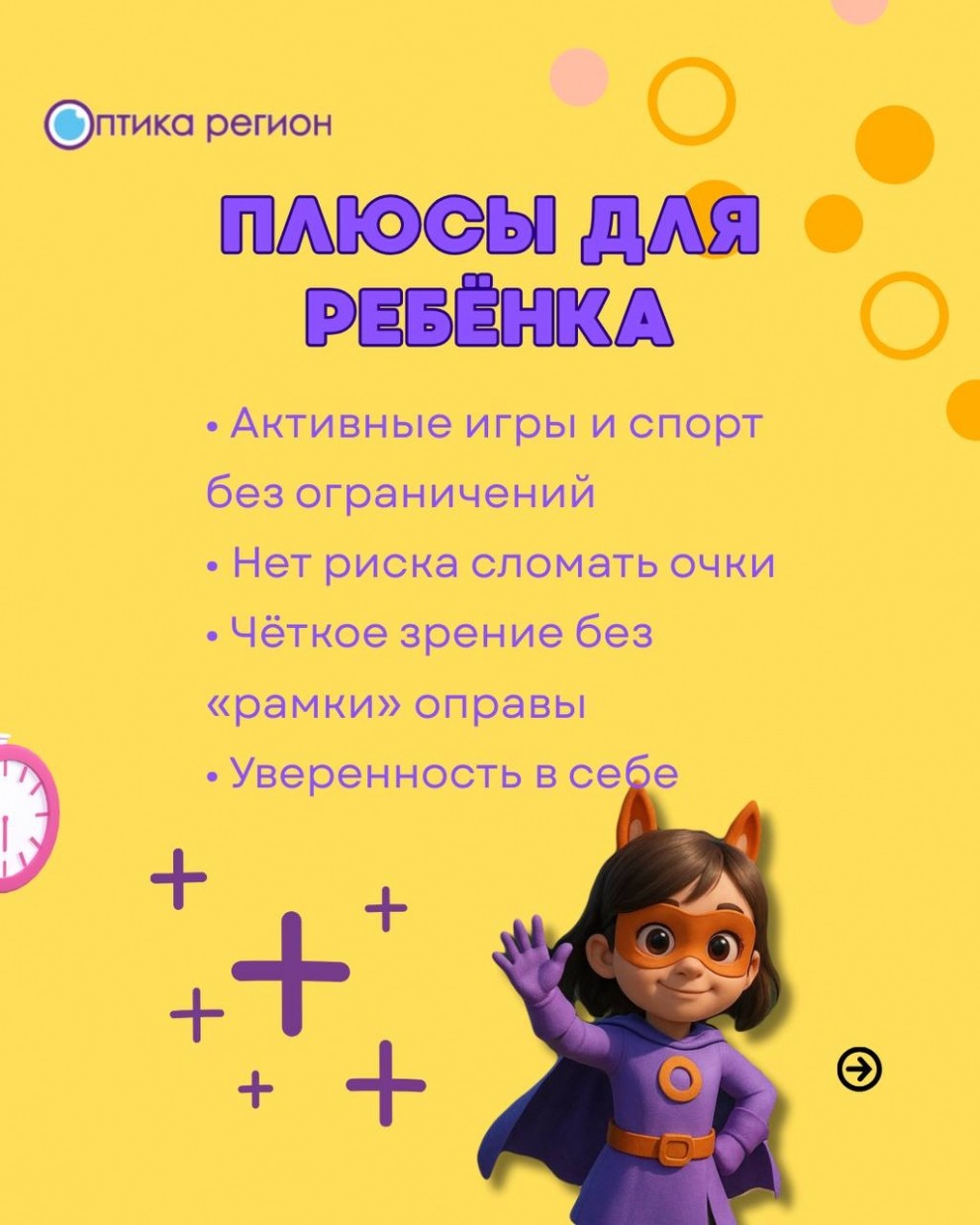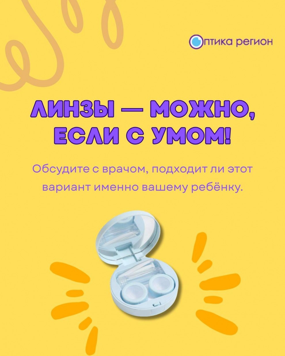 Салоны оптики «Оптика Регион» предлагают широкий выбор контактных линз и очков для детей и подростков. Опытные специалисты помогут подобрать оптимальное решение именно для вашего ребенка. Приглашаем вас посетить салоны «Оптика Регион», чтобы получить профессиональную консультацию и подобрать комфортное средство коррекции зрения!